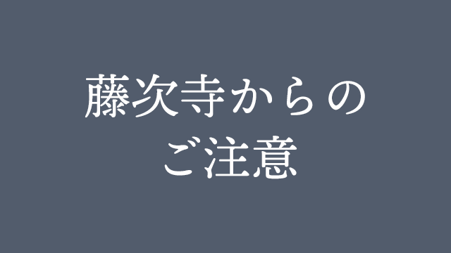 近頃、メルカリやAmazonなどのインターネット上で、「藤次寺ご祈祷済み」と称し、開運のご利益をうたった数珠やお守りが無断で転売されている事例が報告されています。